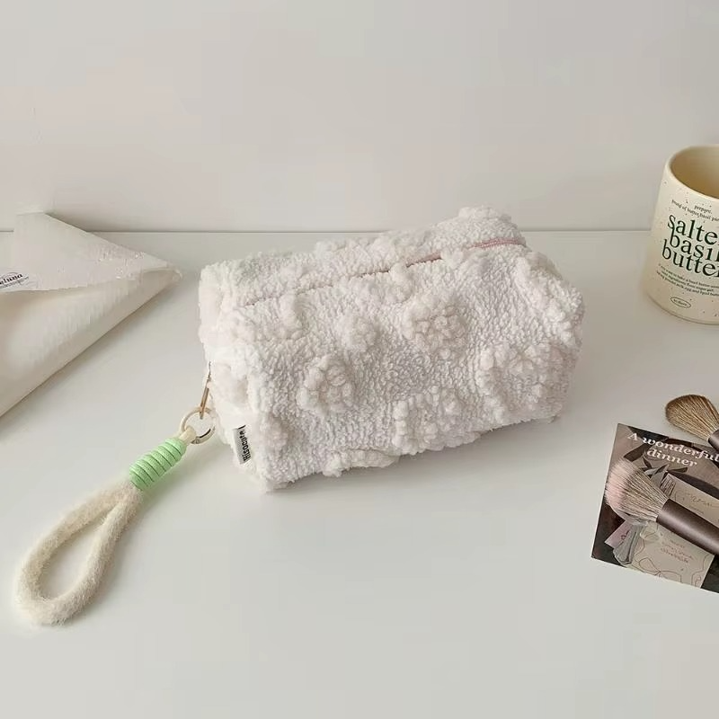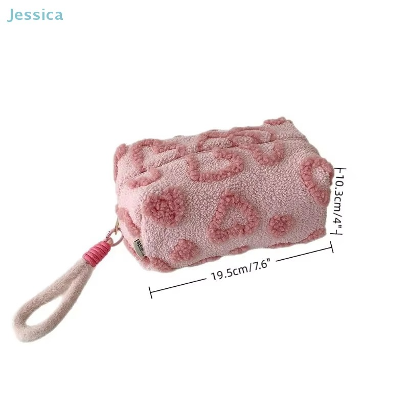 Sacs de maquillage en peluche douce imprimé amour, avec poignée, trousse à crayons de grande capacité, sac de rangement de cosmétiques de voyage Portable